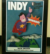 Nick Driver Band was named the Best Rock Band in 2012 in the Raleigh-Durham-Chapel Hill magazine the Independent Weekly by readers of the magazine. The photo to the left is the plaque the magazine awarded the band for the accomplishment.